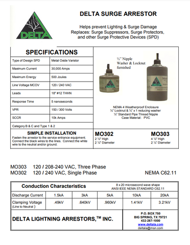 MO303  4 wire three phase: 36" leads, 0-300 volts MOV